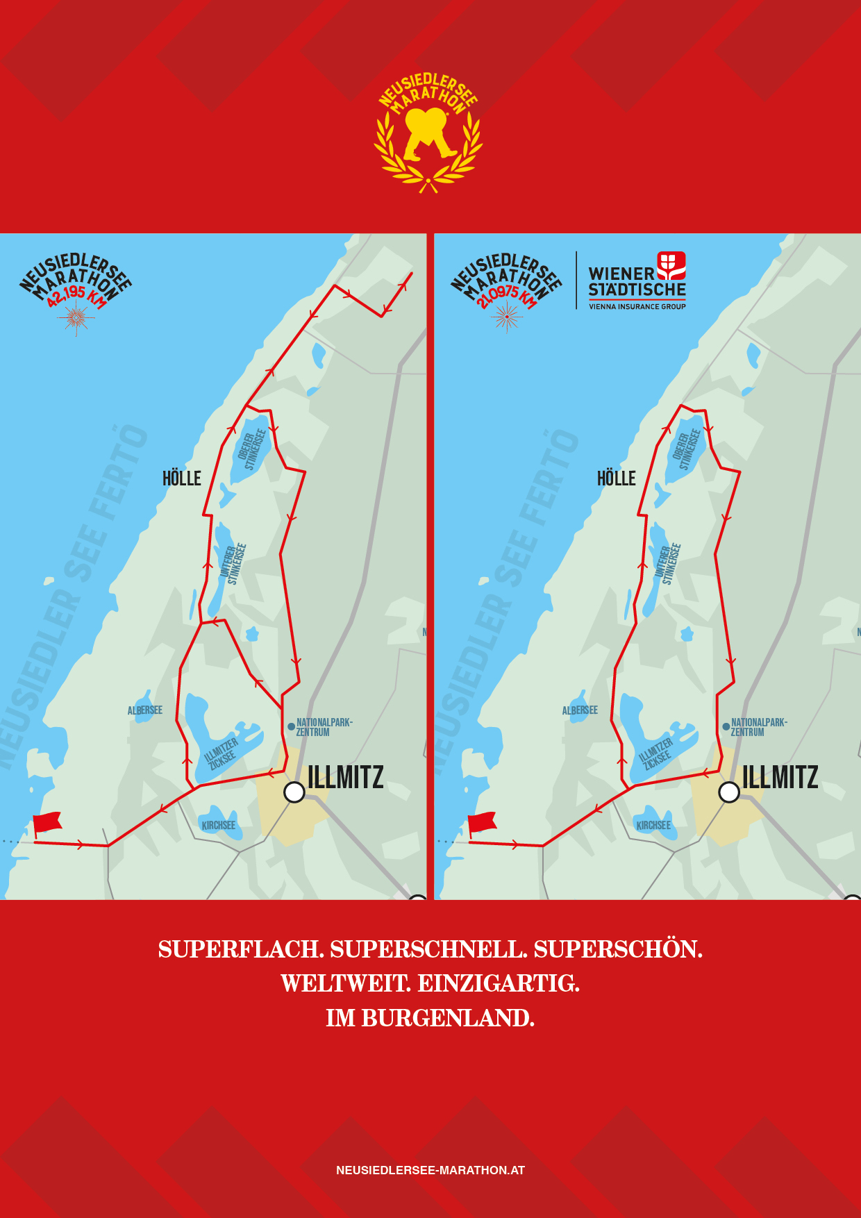 Der Neusiedler See Marathon und der Wiener Städtische Neusiedler See Halbmarathon finden am Sonntag, den 27. September 2026 mit Start & Ziel im Strandbad Illmitz statt.